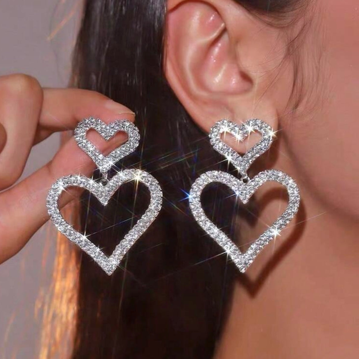 Fashionable Sparkly Heart Rhinestone Crystal Dangle Earrings